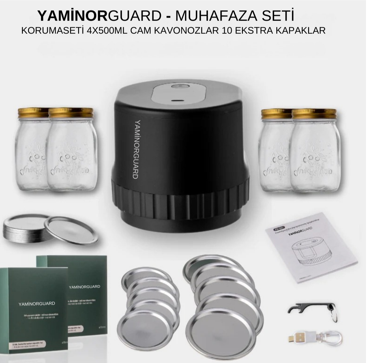 YaminorGuard™ en iyi kendi kavanozlarımızla çalışır, ancak birlikte verilen adaptör birçok başka konserve kavanozuna da uyar.